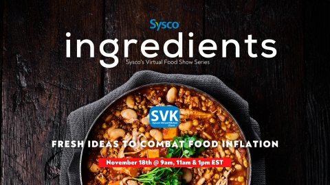 Is your foodservice business feeling the impact of Food Inflation? Learn how to adapt and thrive despite food inflation on November 18th by tuning in to Sysco Canada's "Ingredients: Sysco's Virtual Kitchen Food Show". Featuring fresh and innovative culinary ideas, as well as effective restaurant operations solutions, our top vendor partners will he...